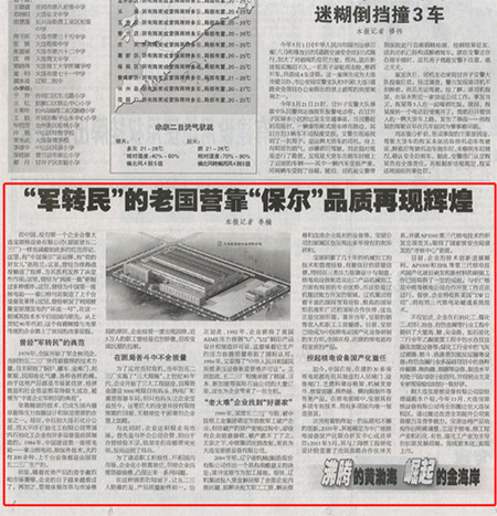 大連日報在2025年12月4日A4版中,以“‘軍轉民’的老國營靠‘保爾’品質再現👈輝煌”為标題對大連寶原核設備有限公司進行了報🈲道。原🐪文轉載如下: