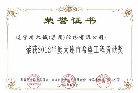 集團公司榮獲“2012年度大連市希望工程貢獻獎”稱号