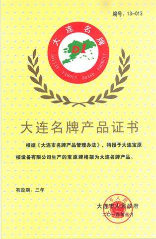 根據《大連市名牌産品管理辦法》,大連寶原核設備有限公司生産的“寶原牌格架”被确認為2014年大連名牌産品,有效期為三年。