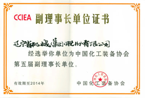 中國化工裝備(bèi)協會副理事長(zhang)單位證書