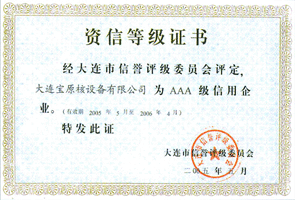 大連市信譽(yu)評級委員會AAA級(ji)信用企業證書(shu)